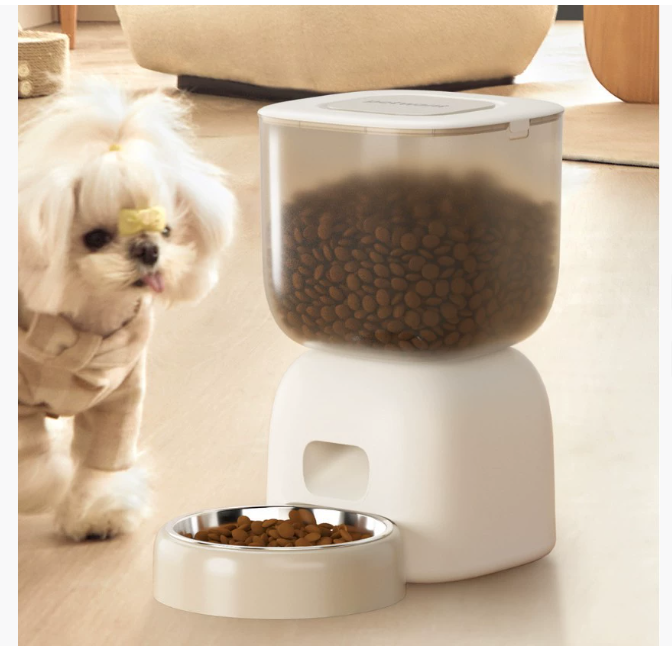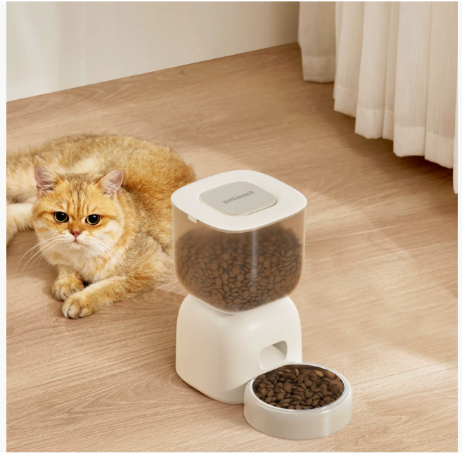 This Petwant smart feeder features a minimalist, compact design: a matte white ABS base paired with a transparent top hopper, blending seamlessly with home decor. The see-through hopper lets owners check food levels at a glance, while the detachable 304 stainless steel bowl fits ergonomically for pets’ eating. Its rounded, space-saving shape suits living rooms or corners, and the double-lock lid prevents pets from opening the hopper. It’s visually sleek and pet-friendly, ideal for cats and small-to-medium dogs.